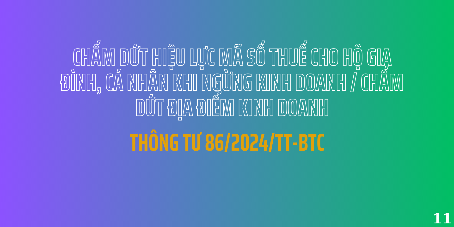 Thủ tục thuếChấm dứt hiệu lực mã số thuế cho hộ gia đình, cá nhân khi ngừng kinh doanh / chấm dứt địa điểm kinh doanh 06/09/2025 / 4 phút đọc
