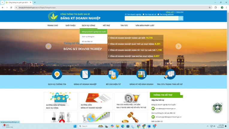 Hình 1: Màn hình trang chủ của Cổng thông tin quốc gia về đăng ký doanh nghiệp