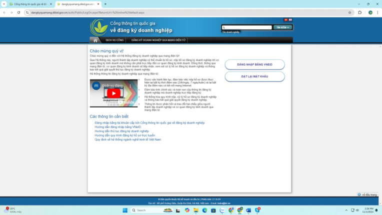 Ở lần đăng nhập tiếp theo, người dùng chỉ cần nhấn nút [Đăng nhập bằng VNeID] và thực hiện các thao tác để đăng nhập VNeID thành công sẽ tới trang dangkyquamang.dkkd.gov.vn và có thể sử dụng các dịch vụ công trên Cổng thông tin quốc gia về đăng ký doanh nghiệp.