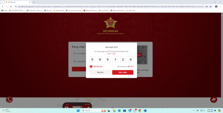 Hình 4: Màn hình đăng nhập VNeID của Trung tâm dữ liệu Quốc gia về dân cư