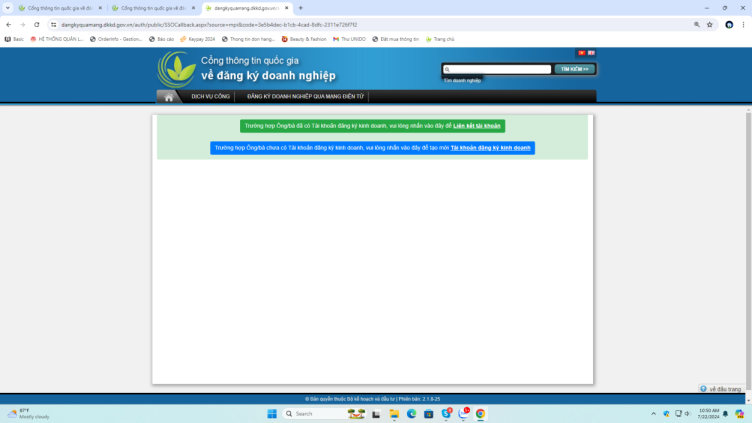 Trường hợp 01 (đã có tài khoản đăng ký kinh doanh cần phải liên kết tài khoản ĐKKD với tài khoản VNeID)
