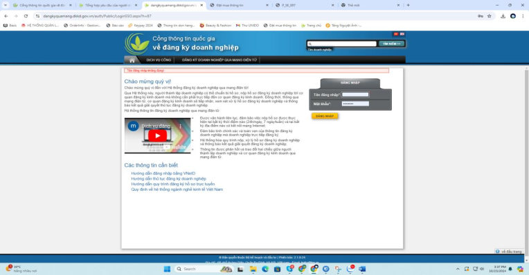 Hình 2: Màn hình đăng nhập Cổng thông tin quốc gia về đăng ký doanh nghiệp